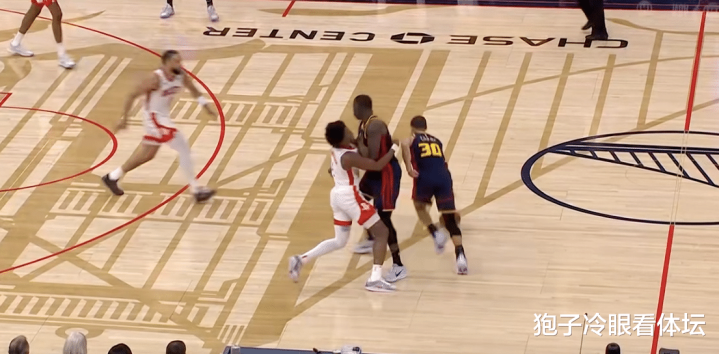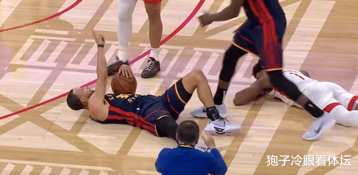 倒地后的库里朝着狄龙比划了一个“二”的手势,示意对方已经是第二次了。球在库里手里,狄龙则是上来就要抢球。